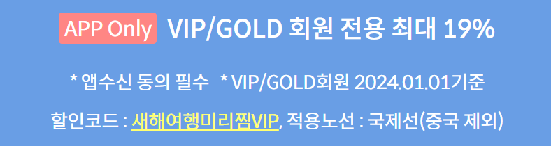 - VIP/GOLD 회원 전용 최대 19% 할인코드: 새해여행미리찜VIP