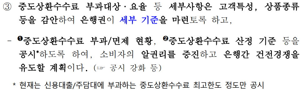우리나라도 모범적인 해외사례를 통해서 중도상환수수료의 투명성과 합리성을 제고하는 방향으로 제도가 개선되도록 규정을 개정해나간다고 합니다.